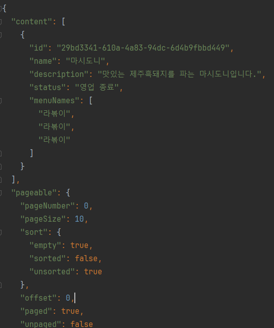 다음으로 시도한 방법은 조인 쿼리를 직접 날려 중복되지 않은 가게들만 가져와 해당 가게들의 메뉴들을 불러오는 것이다.
