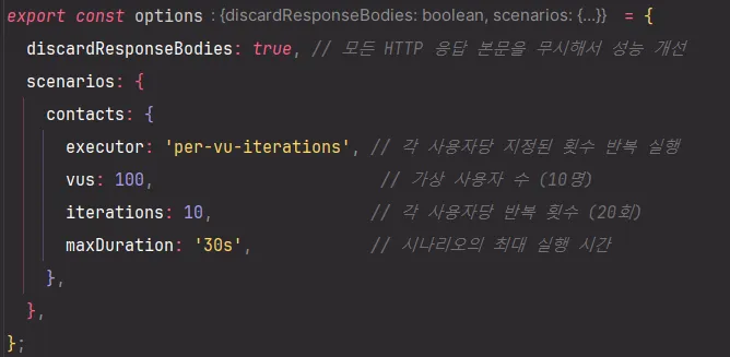 이를 검증하기 위해 K6 툴을 사용하여 로컬 환경에서 성능 테스트를 진행했다.
