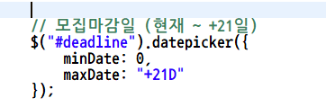 그 결과, 모집마감날짜 선택 시 현재 날짜로부터 3주 내의 날짜까지 선택할 수 있다.
