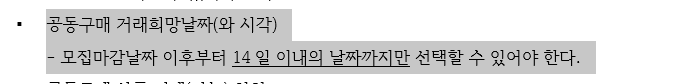 모집마감날짜를 9월 1일로 선택하였다면 거래희망일은 다음과 같이 해당 날짜 내에서만 선택 가능하다.