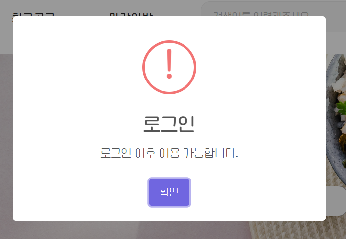 따라서 header.jsp 에 코드를 추가하여 로그아웃 상태일 시, 먼저 로그인을 하라는 alert 창이 뜨게 하였다.