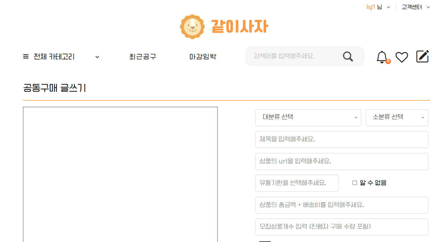 드디어! 우리 웹 사이트의 메인 기능인 공동구매 게시물 작성을 완료했다.