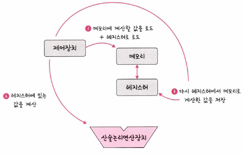 3) 제어장치가 계산된 값을 다시 레지스터에서 메모리로 저장